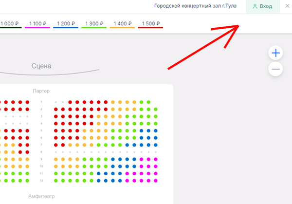 Кабинет бонусной программы, доступен при оформлении заказа на мероприятие, участвующее в бонусной программе, для этого необходимо в правом верхнем углу экрана нажать кнопку "Вход".